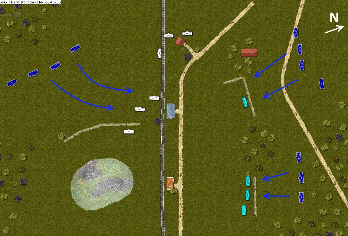 | Objectif principal : tenir la gare et le rail…Mes artilleurs, fins prêts, attendent. Main objective: to hold the station and the rail … My gunners, ready, are waiting. |