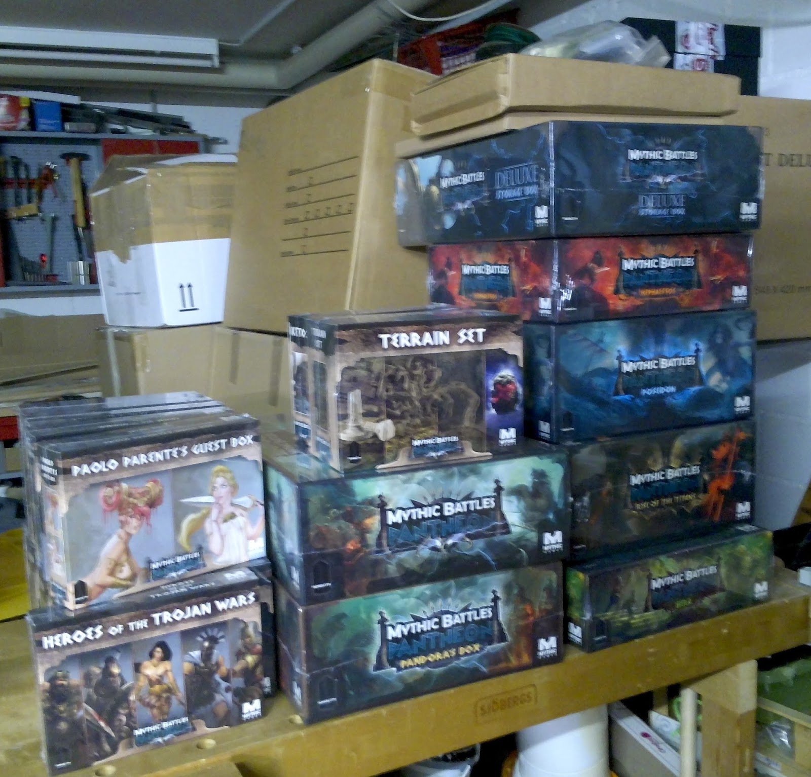 Bisweilen sind das dann wirklich riesige Lieferungen. Wie der vor ein paar tagen eingetroffenen Mythic Battles: Pantheon von Monolith.