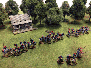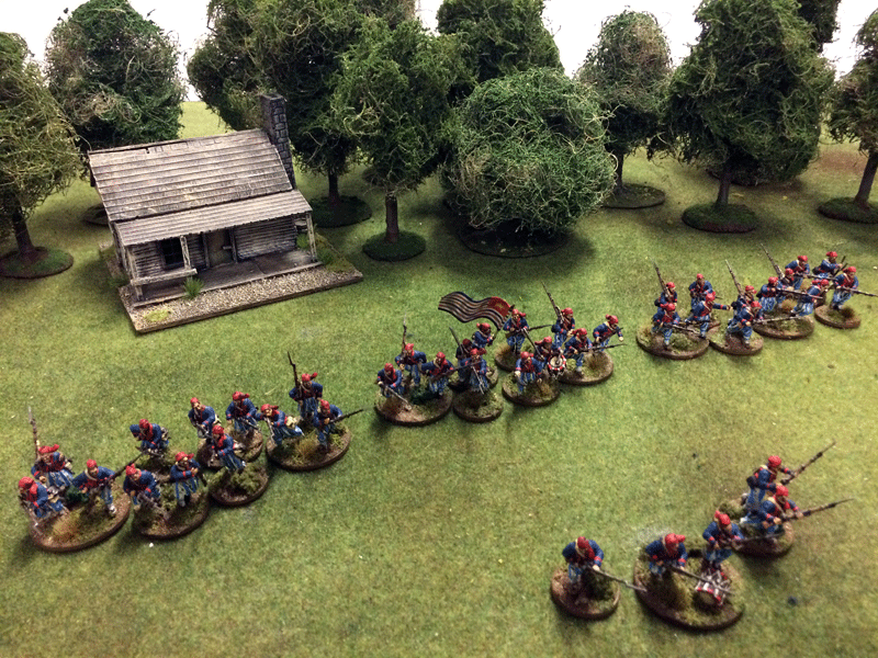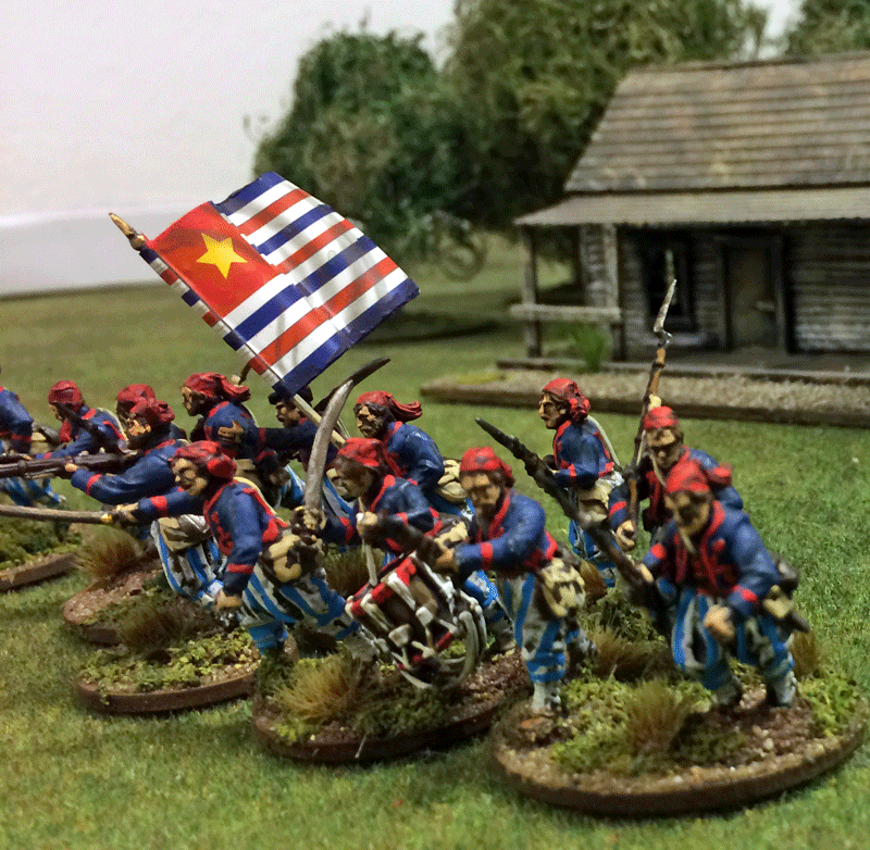 Ofcourse i painted them as Louisiana Tigers, it was harder than I thought to paint blue strips…. The box had 42 minis so I made me 3 units of 12 minis and a group of skirmishers of 6 minis (yes the drum count as a minis as I somehow was one minis short in the end…). The banner I used was the one included in the box.