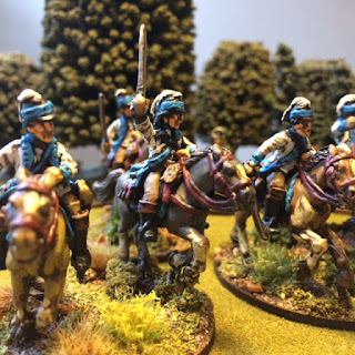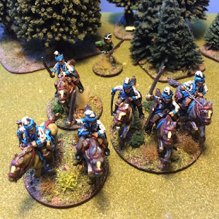 I have had them primed for about 4-5 years but never come around to paint them… but with the Rebels and Patriots rules in the pipeline I decide it was time to give them some love. The minis are from Foundrys AWI range (Sculped by Alan Perry) pack: AWI026 – Dragoons Command and AWI025 – Dragoons In Helmets. It dosent say wich of the Continental Dragoon regiemnt they are but as far as I know they looks like 3rd Light Dragoons so that is the way i tried to paint them for my Rebels and Patriots Light cavalry unit..