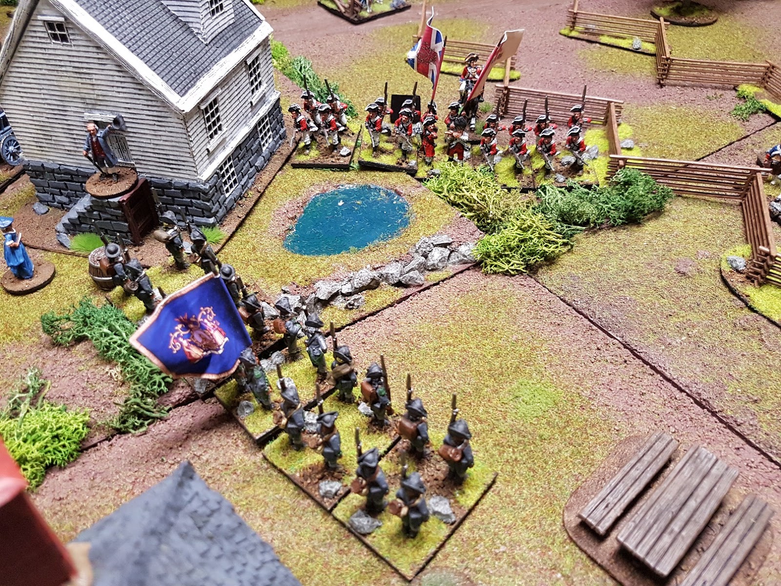 Task for the american player was the defense of the village Swinetwon Cross against attacking Hessian and British troops: