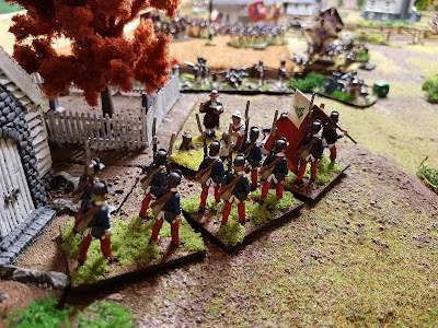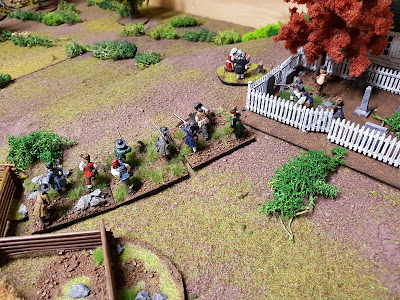 Die Miliz steckte heftige Verluste ein, und musste sich zurückziehen. Die Hessen überstiegen die Weidezäune und versuchten uns in der Flanke zu fassen.