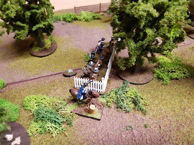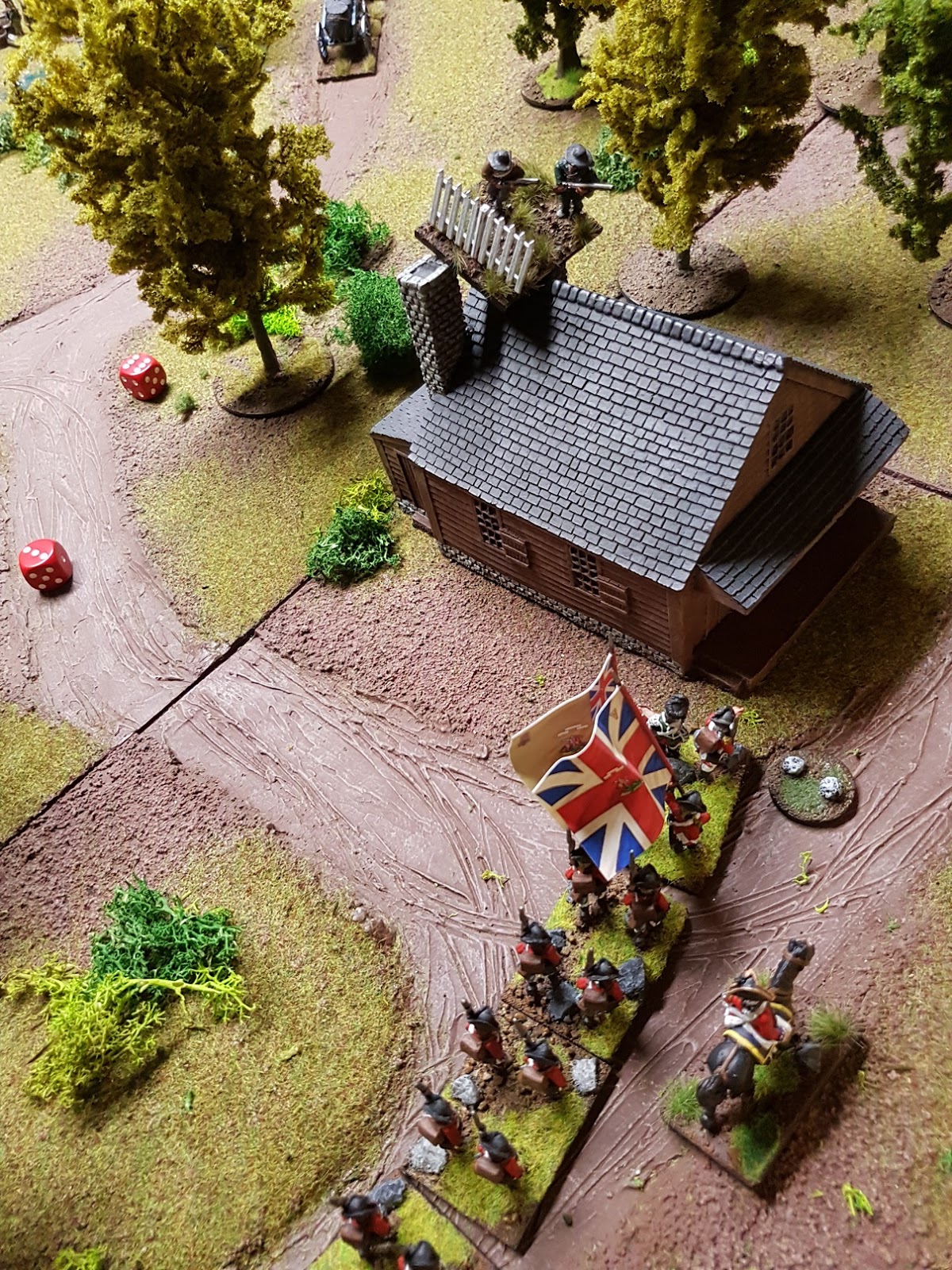 „Plänkler ziehen sich automatisch vor angreifender Linieninfanterie zurück“, rief Svensson aus, und wir verließen unsere befestigte Stellung, um hinter dem Haus in Deckung zu gehen.