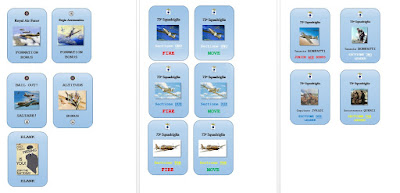 I’ve been knocked sideways by a particularly vicious twenty four hour sickness bug, so the weekend was a bit of a wash out as far as wargaming is concerned. To make up for this, I’ve adapted a set of turn cards that I produced for a North Africa scenario, using them as a template to create the deck for the Bag the Blenheims Lard Day game. I’m quite pleased with the end result, as it’s a bit more upmarket than the generic deck I created for the Bandits Over Berlin game, so I hope the players appreciate the full on technicolour production values?