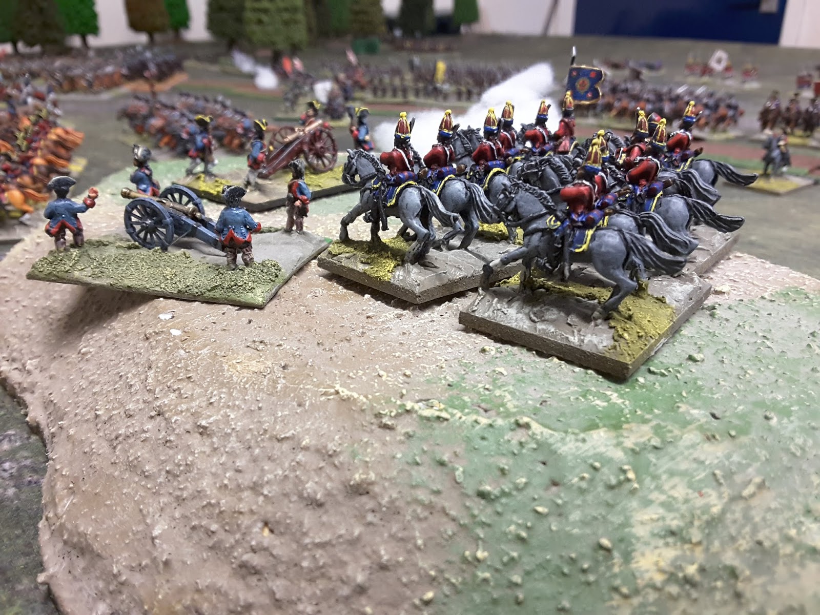 The Hanoverian Guard at the front of the Allied Centre took most of the French Artillery hits and the Cavalry were able to get out into the open and onward to the Warte !