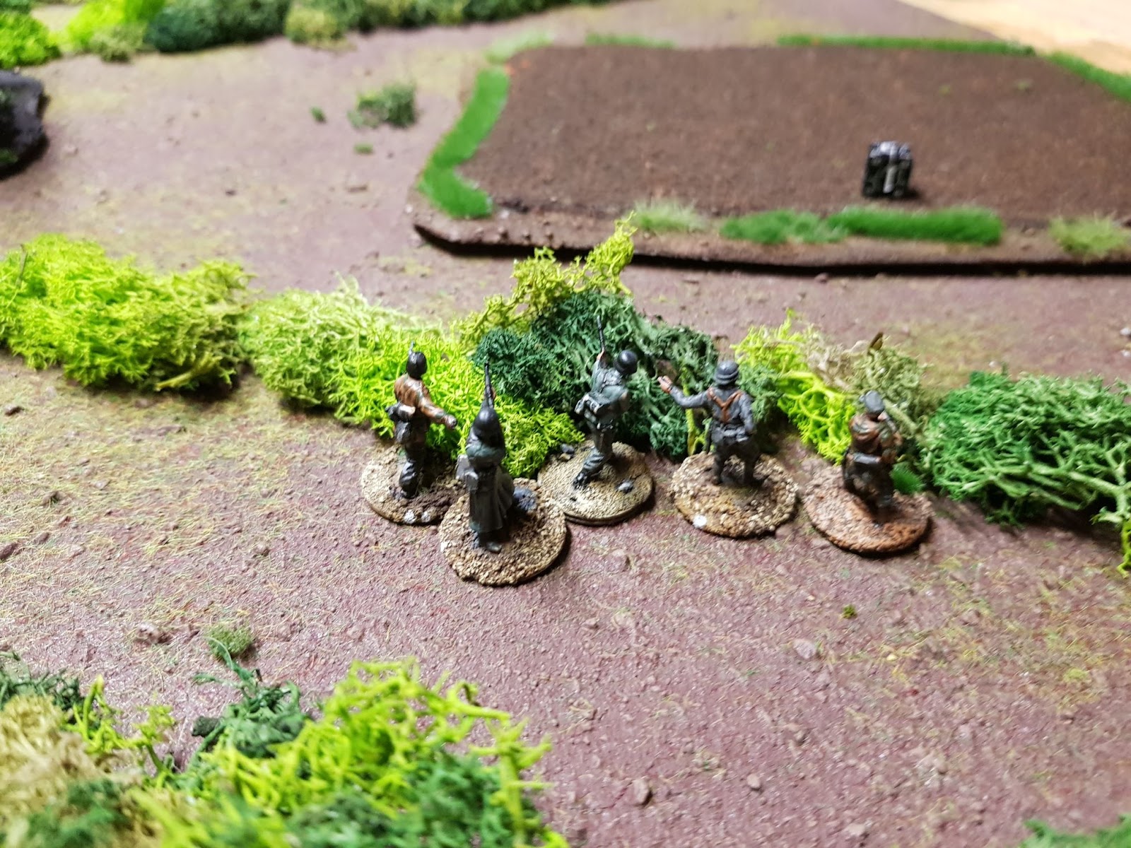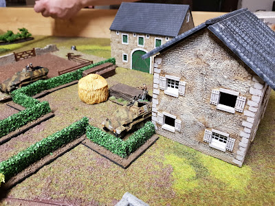 Die Deutschen betraten das Feld in der Nähe des Turms und des Gehöfts am anderen Ende der Spielplatte.