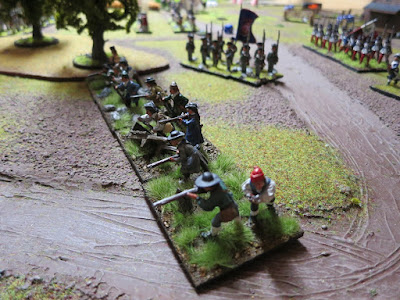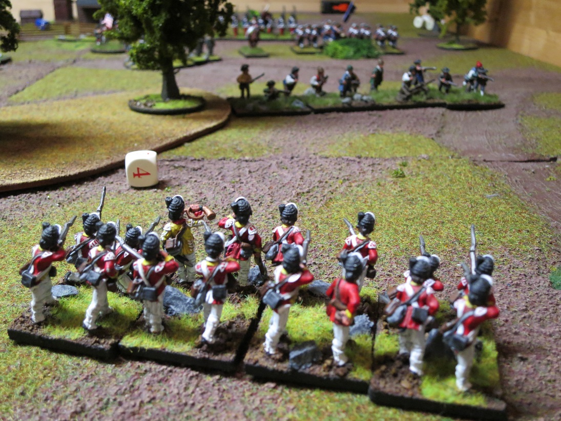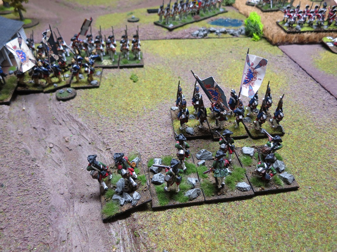 Der Befehl brachte das Füsilierregiment ungefähr auf die Höhe der hessischen Jäger. Diese deckten nun die Flanke, beschossen aber auch das französische Regiment im Kornfeld. Das taten sie wirklich sehr erfolgreich.
