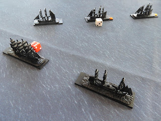 I have based all my ship models on laser cut mdf bases but realised today that this could make arcs of fire more difficult to work out. I decided in today’s game that the arcs of fire would be measured from the bows and stern of the model, not the actual base, although I may change to the latter approach in the future to make it obvious. This is nothing to do with the rules but is worth thinking about.