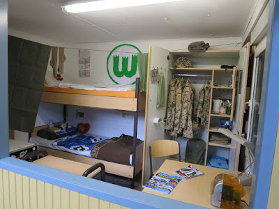 Dazu gibt es einige Bilder und der Blick in einen Mannschaftscontainer mit entsprechender Stube.