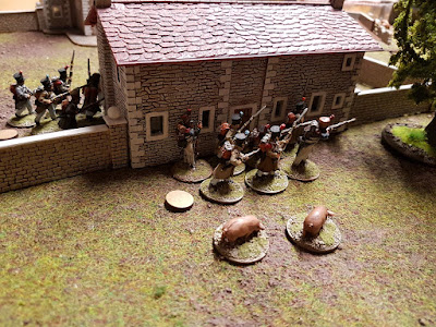 The ambush failed miserably. The Englishmen could advance. In the ensuing firefights, the British proved to be the better shooters. The French were losing more and more and had to withdraw behind the protective walls of the monastery.