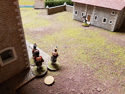 Die Männer bewegten sich wie vorgesehen nach vorne. Tardi immer entlang der Mauer des Klosters. Plötzlich entdeckte er einen Durchlass und führte die Männer hier herein.