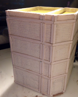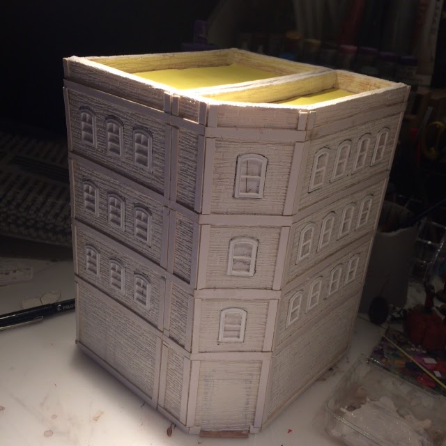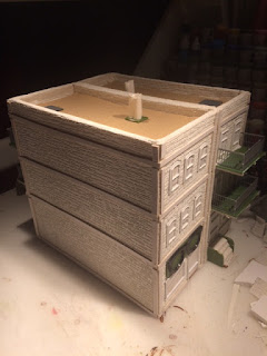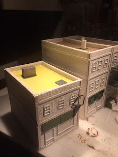 As you seen in my erlier posts I made me a small modern city board and I ofcourse had to have some buildings. Had a look at some MDF ones but decided to build mu owns, managed to build me 3 so far and it might be one or two more, but first these need to be painted.