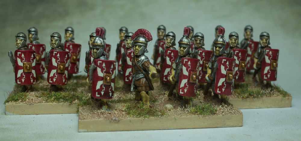 Das folgende Projekt lag schon lange bereit, und endlich habe ich meine kleine Römer-Streitmacht für DBA fertig gestellt. (DBA 2.2 – II/56 Römisches Imperium 25vZ bis 197).