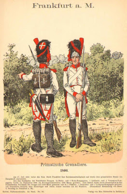 Die neuen Uniformen erreichten spätestens im Jahr 1806 die Truppe. Das ist das Jahr in dem der Fürstprimas dem Rheinbund beitrat. Ob dies auch gleichzeitig symbolischer Ausdruck für die Abkehr von alten war, kann ich leider nicht sagen. Hier schweigen die Quellen. Auffällig ist, dass man sich allerdings bei der Standarduniform hier doch am klassischen Vorbild orientierte.
