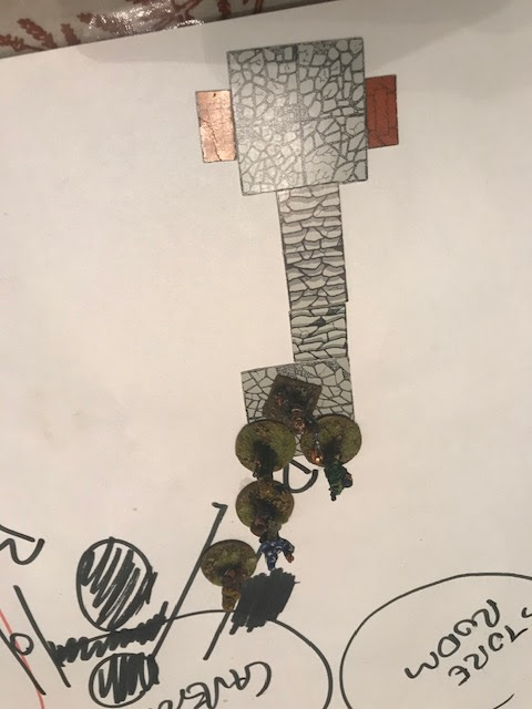 The rugged cavern section is covered without major trauma, then the party finds a more structured (aka „square shaped“) section of storerooms and are dutifully explored (see below, when there are a series of rooms to investigate it is always interesting [fun for the DM at least] to see „who“ goes [or is nominated to go] first into the ’next room‘, a bit of reluctant „turn taking“ is always FUN (karma inducing moments) – as in who’s time is it for their luck to run out and spring a trap):