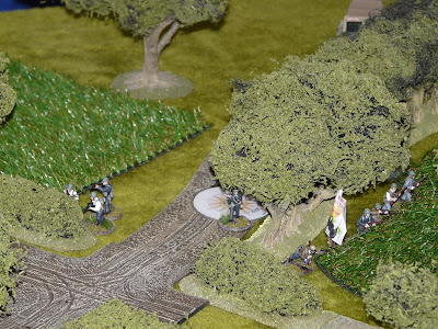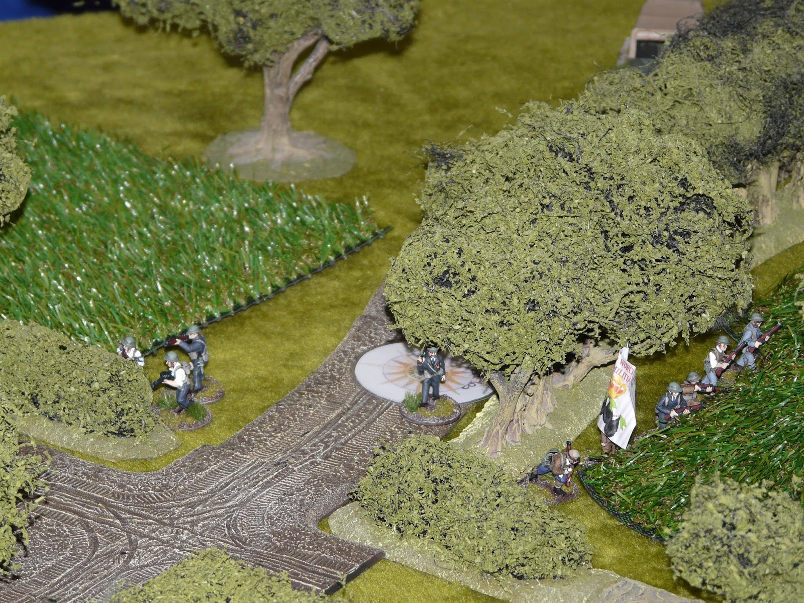 The ADA form up and deploy amongst the trees and hedge rows to protect the lorry from the advancing government forces.