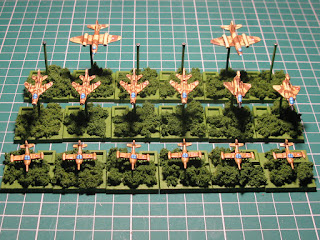 I have now almost run out of Humbrol Grass Green spray but may add some more stands if I can squeeze the last drop out of the can. I might even make these 20mm stands so that I could re-use the jungle for Wings at War: Thud Ridge, which has four levels not just the three. For Target Locked On! I’ll just be using the 40mm stands, with the dice frame used for a 7mm Altitude D6 rather than one for Energy. At this rate, I might even get a game sorted sooner rather than later, who knows? I’m pleased with this flight stand DIY method as it is dirt cheap, easy to do and looks pretty good!