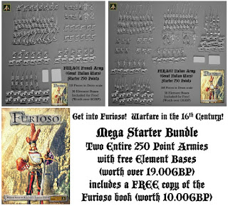 Furioso is a set of wargames rules that covers European warfare in the sixteenth century. The rules allow players to fight large scale land battles with a simple to use and enjoyable gaming system. Furioso can be fought using any scale figures from 6mm to 28mm. There is a core rule book with army lists and there is also the Italian Wars expansion title too. See the game books in print and as digital download along with information on the rules plus the 15mm miniature range and starter army packs on our website HERE.