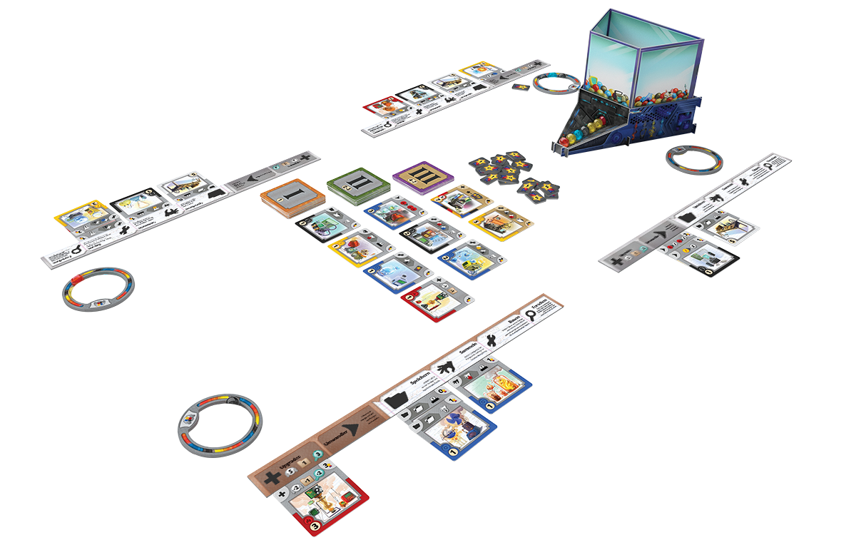 In diesem verrückt-genialen Spiel von CMON sammeln die Spieler farbige Energiekugeln aus dem famosen Energiespender, um die spektakulärsten Gizmos zu bauen (Normalos würden sie „Erfindungen“ nennen). Durch die Aktionen Speichern, Sammeln, Bauen und Forschen füllt ihr eure Labors mit immer mehr verrückten Erfindungen. Wer seine Gizmos am cleversten kombiniert und mit verzwickten Kettenreaktionen die meisten Siegpunkte generiert, wird den 1. Platz ergattern. In jeder Partie gibt es neue, noch erstaunlichere Kombinationen zu entdecken.