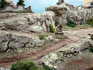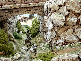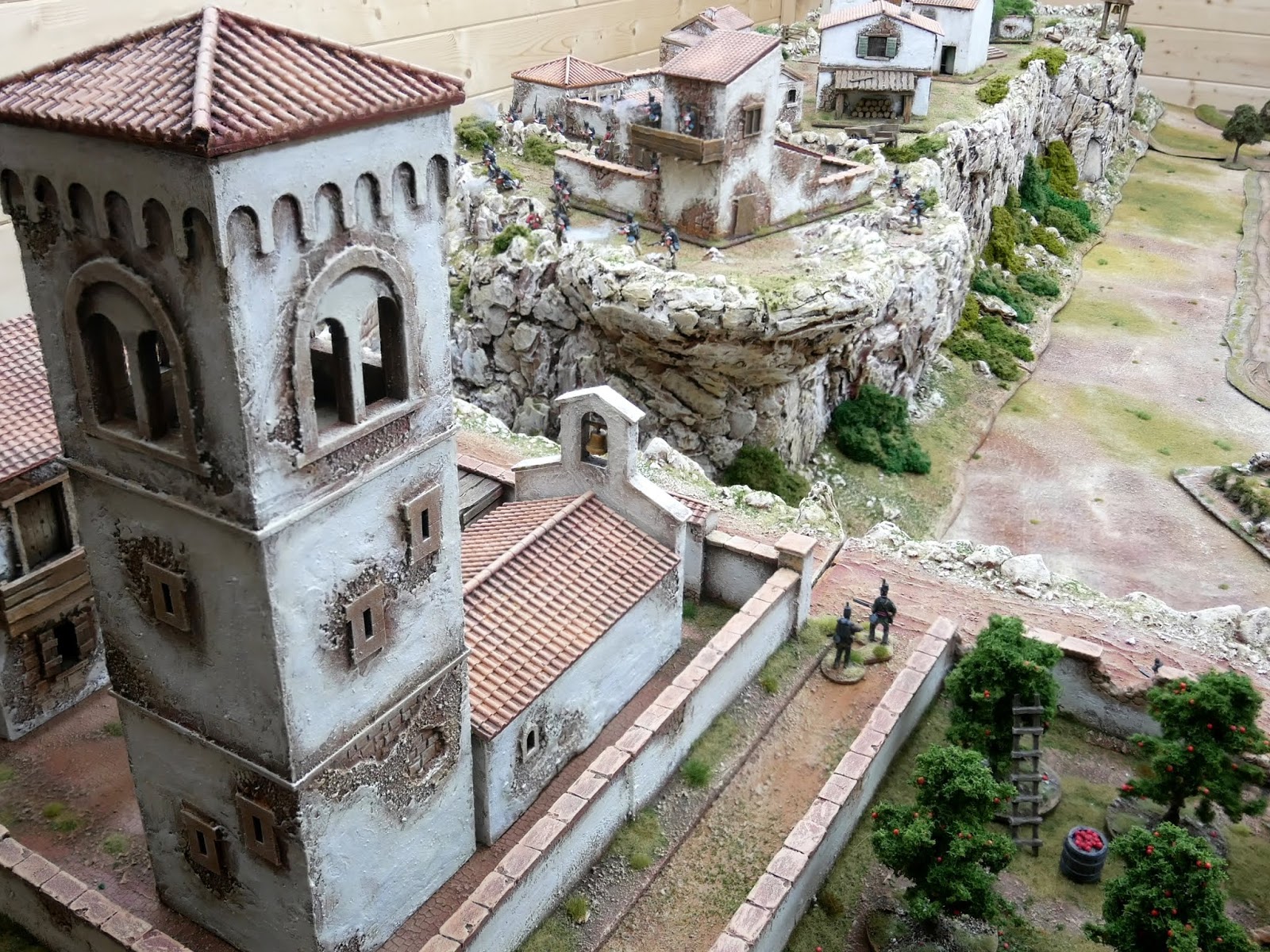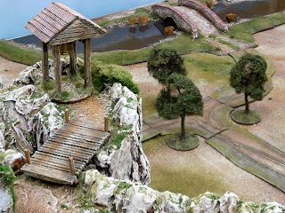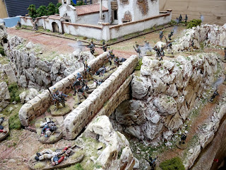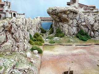 The inspiration for the Monastery on the mountaintop, along with the bridge crossing the ravine came from a wonderful table that I had seen at Salute a couple of years back of a 40mm Napoleonic Peninsula game from the collection of Ian Smith.