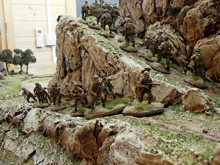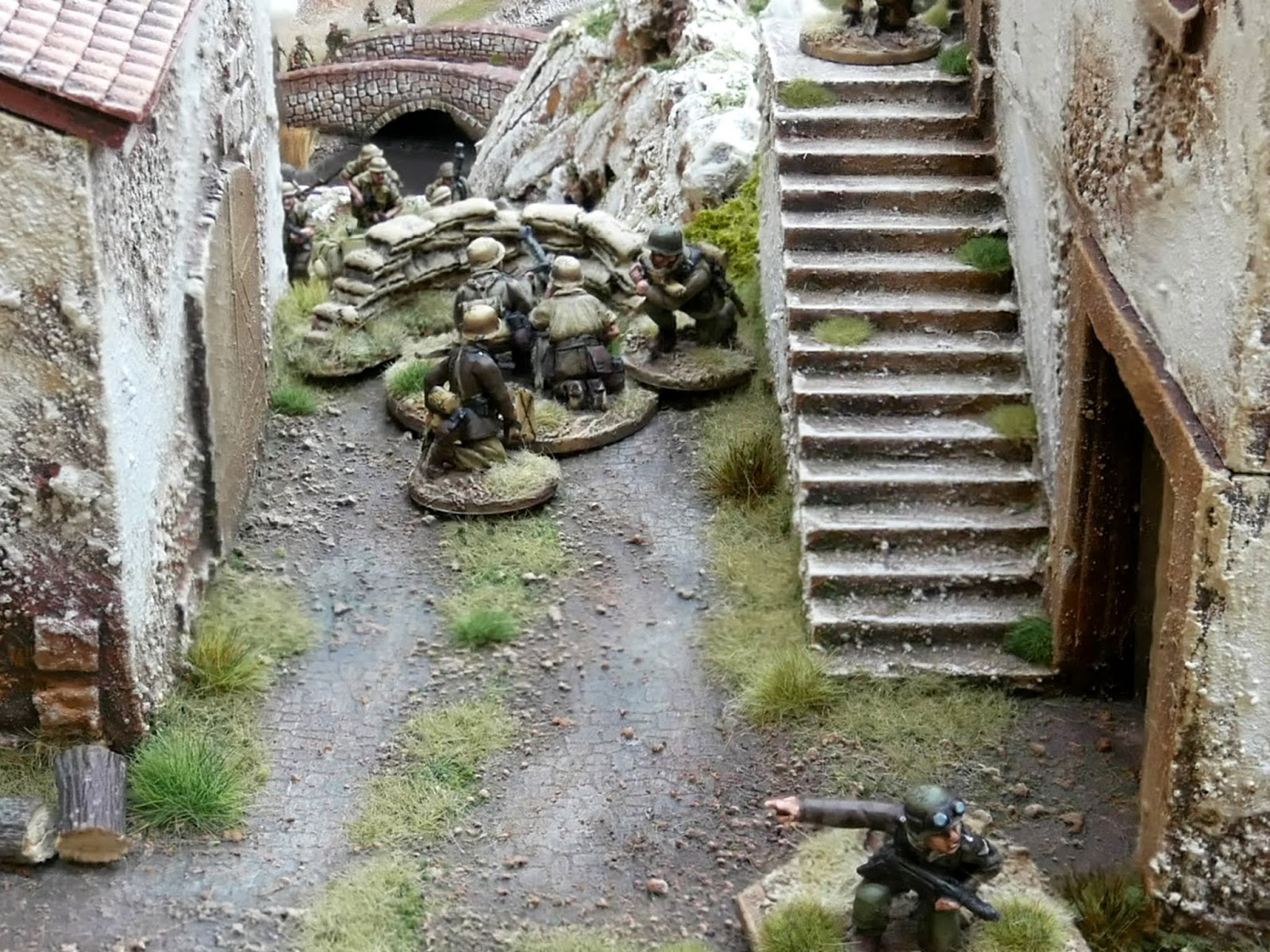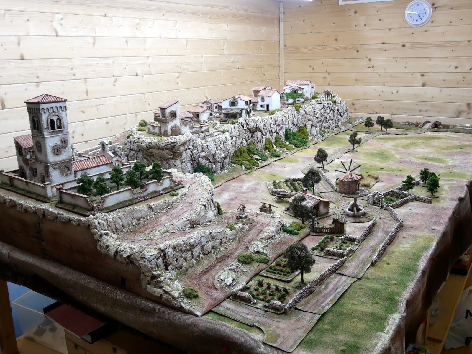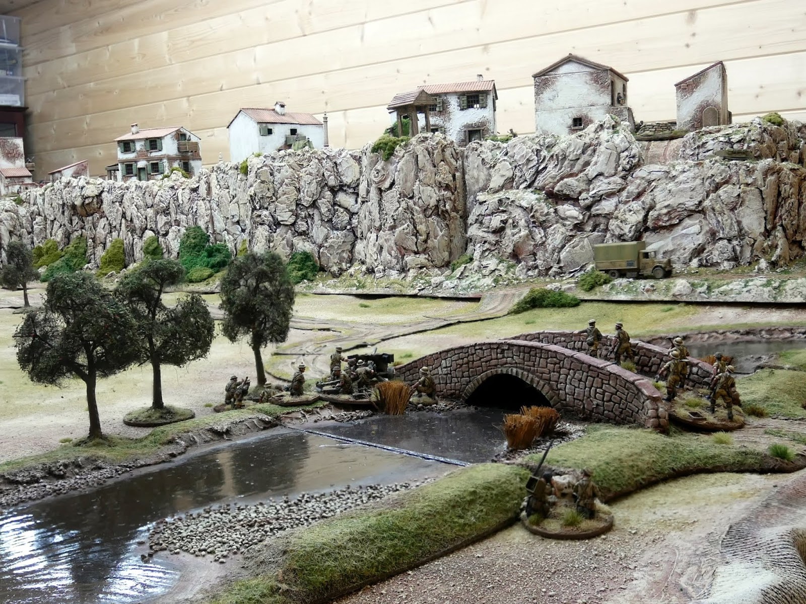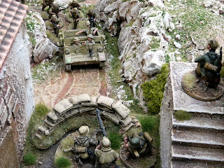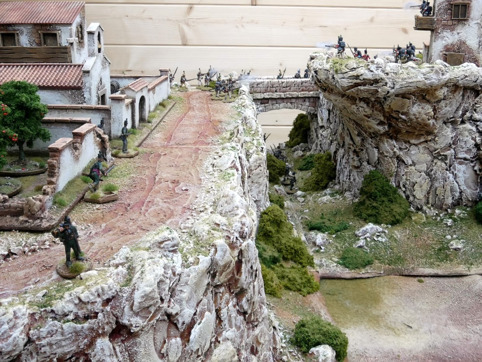 The valley is still looking a bit bare but I will be making a walled terrace hill with the option of the windmill, blockhouse or pillbox sitting on top overlooking the river/bridge depending on if it is a Napoleonic Peninsula or WW2 Sicily/Italy scenario. I also need to fill the valley out with vineyards, olive groves, orchards, and Cyprus trees to line the road. Ideal terrain with lots of cover for WW2 but a nightmare for those formed units of Napoleonic infantry. Lots of skirmish units for Sharp Practice I think, especially the mountain terrain which will be ideal ambush country for the Spanish Guerillas and I have already made a destroyed version of the bridge which can be swapped over with the intact bridge.