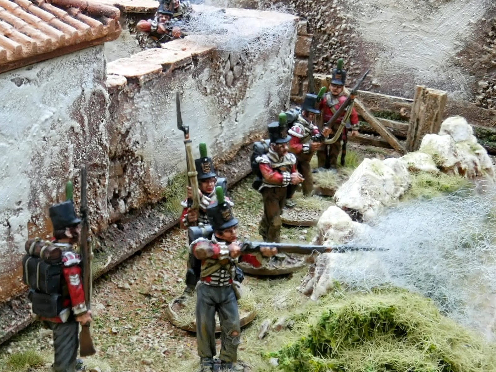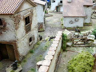 The buildings and walls are either scratch built by myself or come from Charlie Foxtrot, GrandManner, Empress Miniatures and Warbases. The Napoleonic figures are either Perry or Alban Miniatures and the WW2 figures are again from Perry Miniatures. I have taken some pictures of this post with Napoleonic at one end and WW2 at the other end of the table.