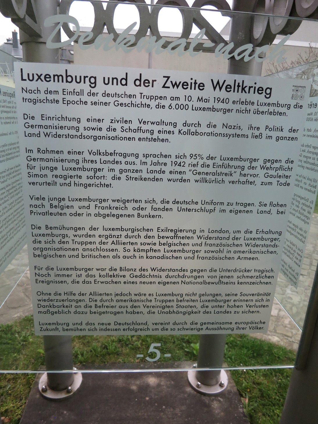 Luxemburg war selbst verfolgt, ausgebeutet, geknechtet, zu Zwangsdienst verurteilt, gefront unter der Knute eines Nachbarn, gezwungen eigene Traditionen, Glaube, Lebenseinstellungen zu verleugnen oder unter Zwang abzulegen. So etwas will man bei anderen verhindern helfen.