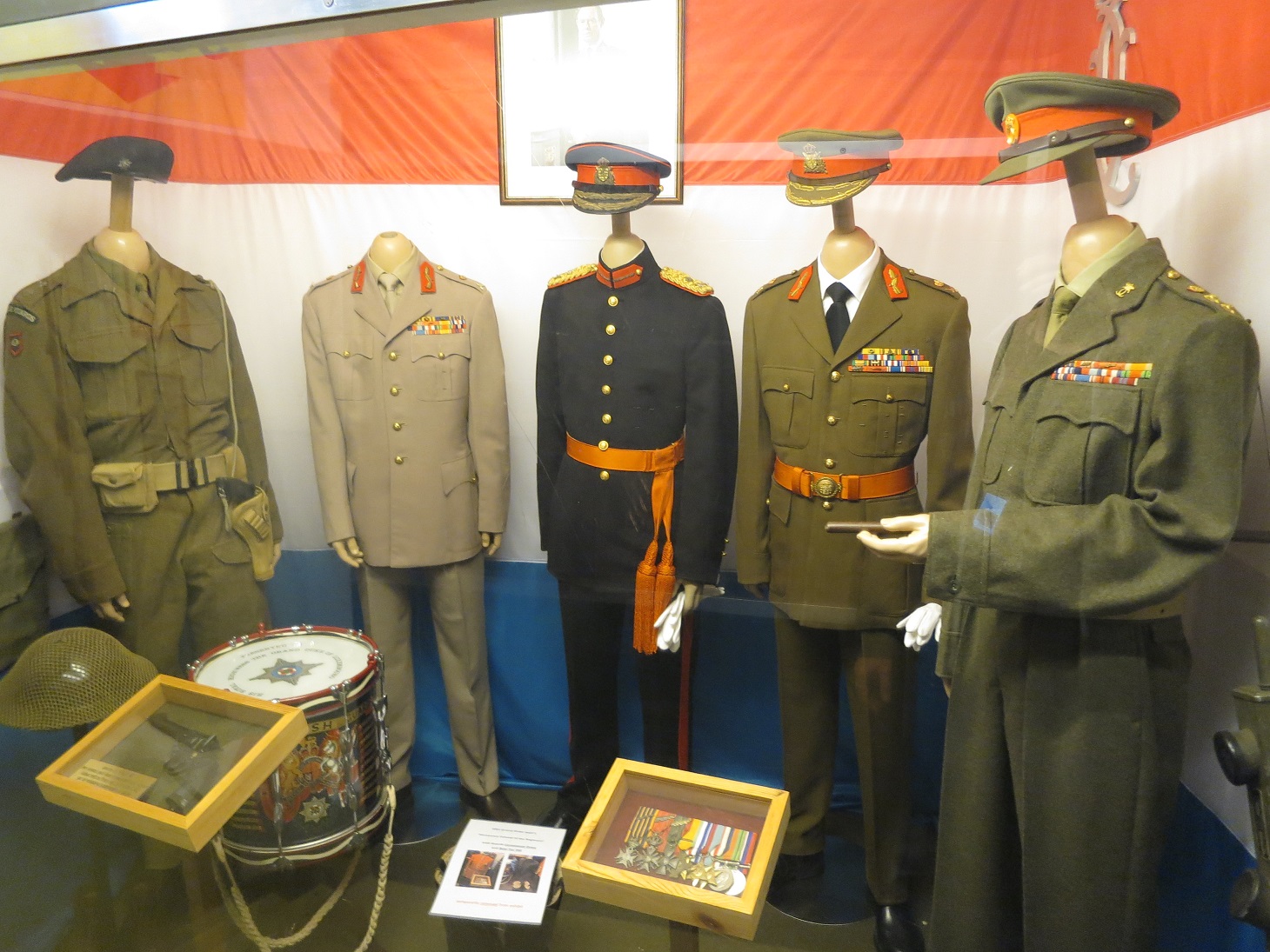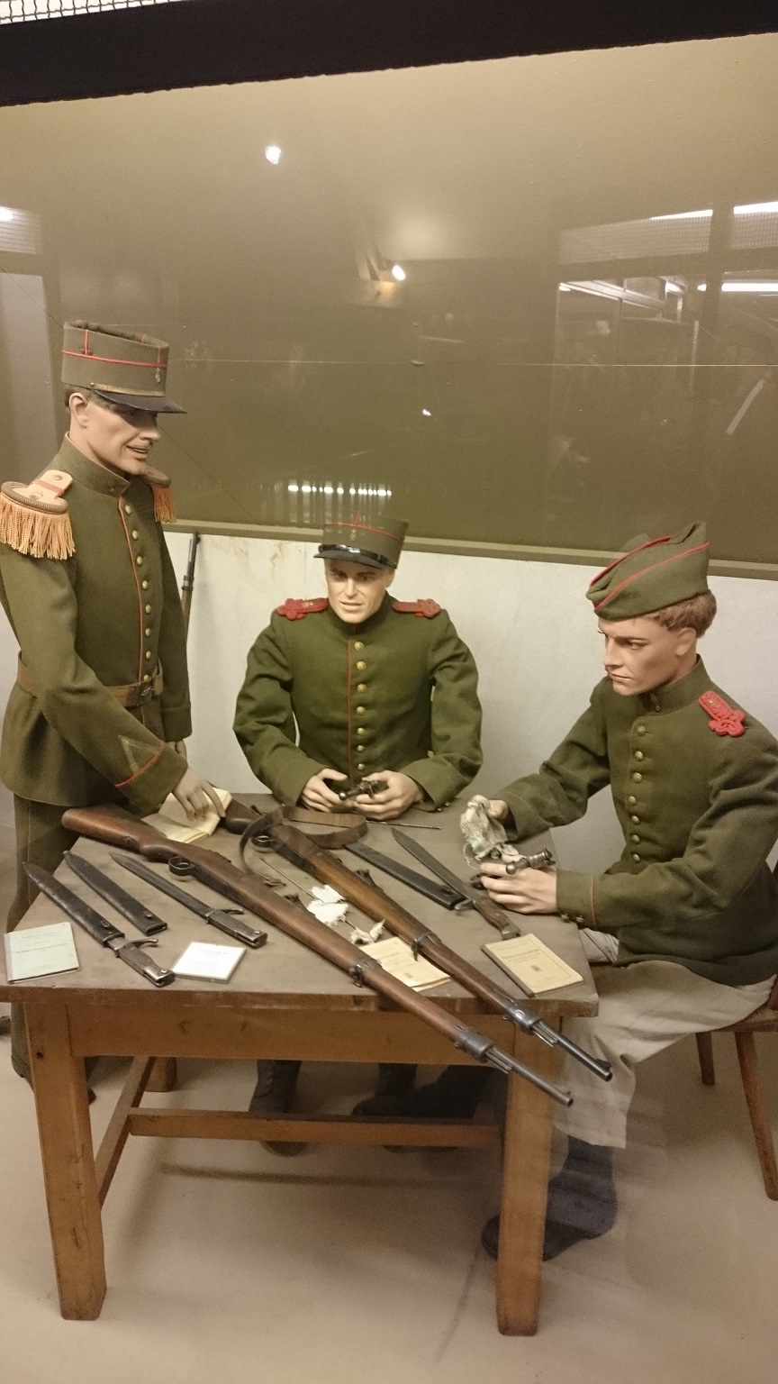 Here are uniforms of the Allies from the First World War, a Lewis MG and a French Hotchkiss MG from the First World War.