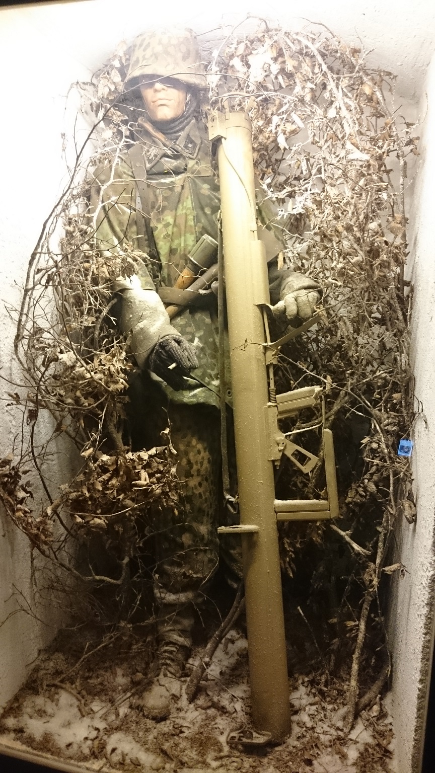 Also a German MG nest with parachute hunters can be found in this area of the museum. Likewise, a Unterscharführer of the Waffen SS with Panzerschreck, as well as a radio of the 352th VGD in a cellar in Diekirch.