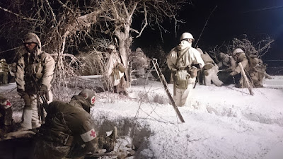 Die nachfolgende Szene zeigt einen vorgeschobenen Gefechtsstand in einem Bauernhaus.