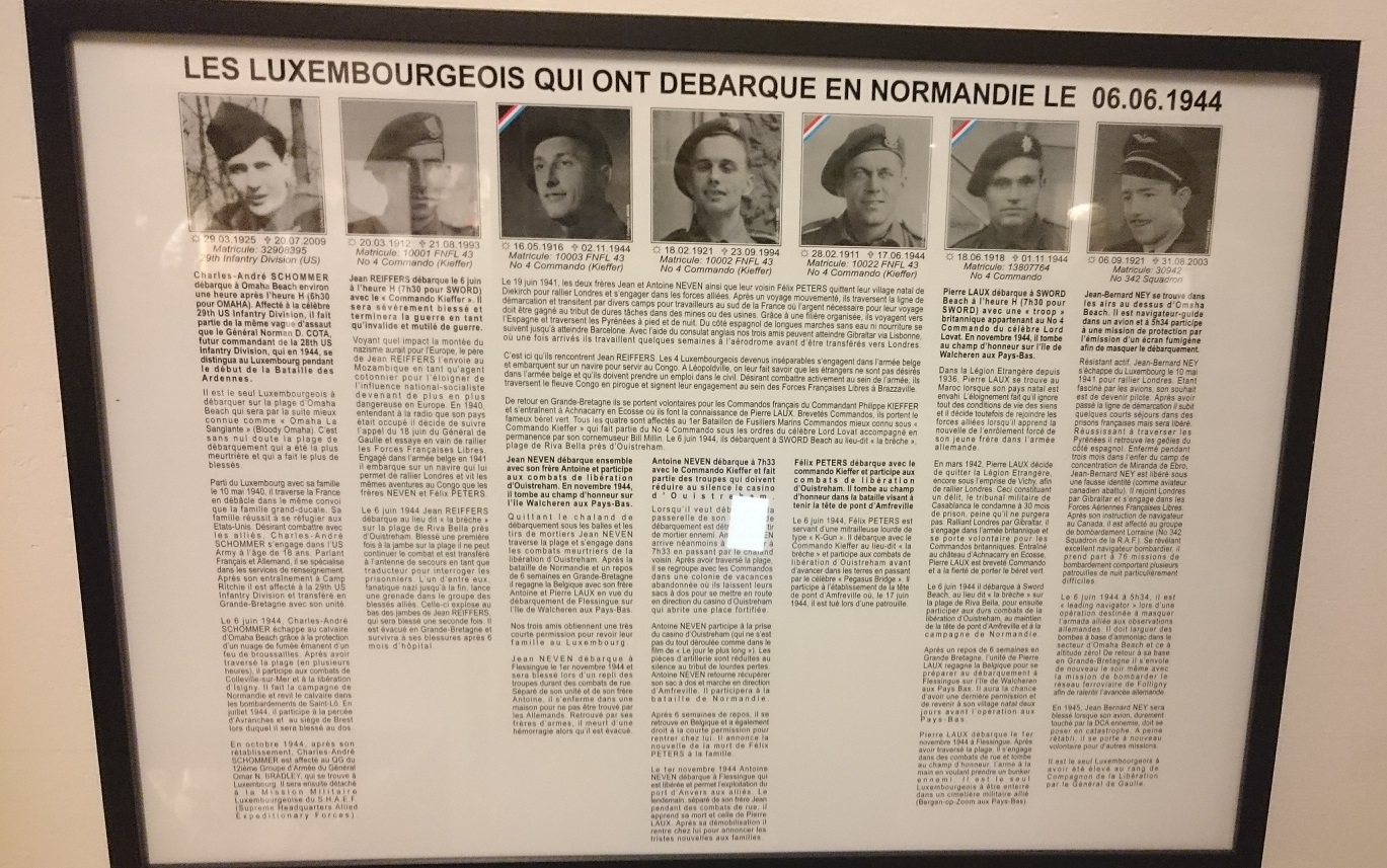 In addition to Laux, Jean Neven and Charles-André Schommer were also the Luxembourgian Jean Reiffers (No 4 Commando), Antoine Neven (No 4 Commando), Felix Peters (No 4 Commando) and Jean-Bernard Ney (No 342 Squadron) In Normandy.