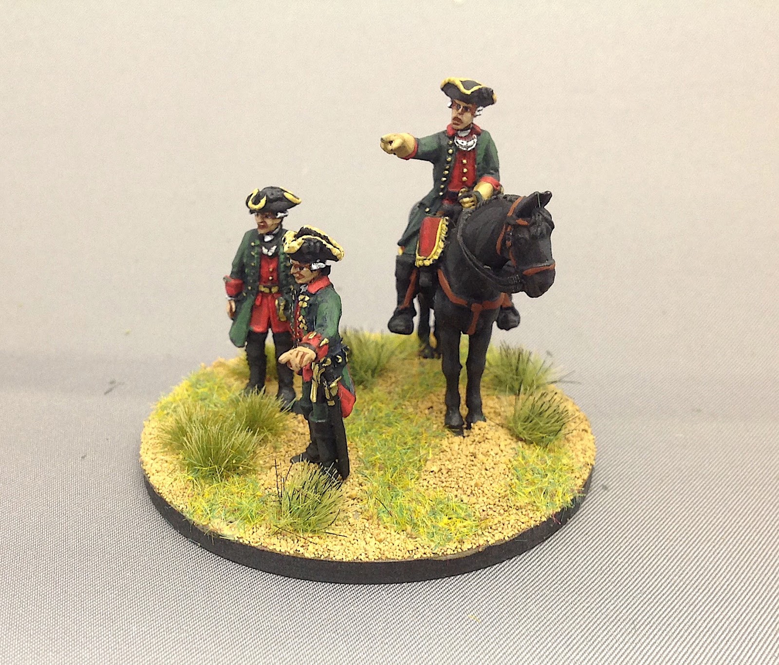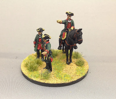 Galitzen commanded the Russian corps that was deployed between the two grunds : Zabern Grund and the Galgen Grund. I used the Minden French colonel and used two dismounted Crann Tara Savoy officers to complete the command stand vignette.