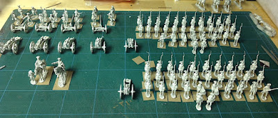 Yesterday saw me cleaning and assembling enough figures to paint two 32-figure Russian Musketeer battalions and four artillery batteries (2 x 12-pdrs and 2 x Shuvulov Secret Howitzers) including limbers. I hope to have all of these painted and based by the end of this month (January 2018).