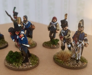 Below you can see some pictures of Swedish troops I converted and painted, first you have a unit of newly awaken Swedish troops converted from different packs of Perry miniatures AWI southern militia, the second group of picture depicts some Swedish Prisoners of war converted from Perry miniatures seated French soldiers and the last group are Wounded Swedes as well as 2 French soldiers, The Swedes are converted from Perry miniatures different napoleonic and AWI ranges to look a bit more Swedish. The French soldiers are one Perry and one Foundry.