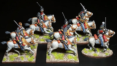 Here’s a unit of Scots Greys which will be used in a cav-heavy Black Powder game based on a scenario in the 2nd Edition – „The Eve of Waterloo.“ As with the rest of my cav, they’re in 8-man units. The officer will be used for either a brigade commander or ADC.
