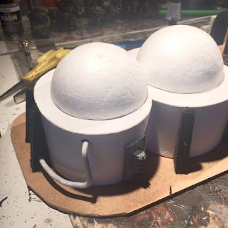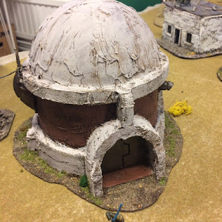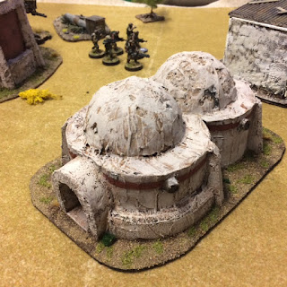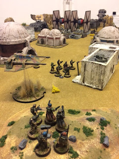 The Tie-Fighters are the Revell Easy Kit 06751 in scale 1:51, the Bunker are a hardfoam one from Micro Art Studios, the Imperial Barracs are scratchbuilt using the plastic terrain sprues for details as doors etc. from Maelstrome´s Edge, The landing pad´s I made from artists painting panel´s that i got from the craft store, the „Tatooine“ buildings are scratchbuilt.