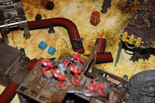 Die Blood Angels schießen aus allen Rohren, treffen aber absolut nix. Der Chef erholt sich, kann aber noch nicht aufstehen.