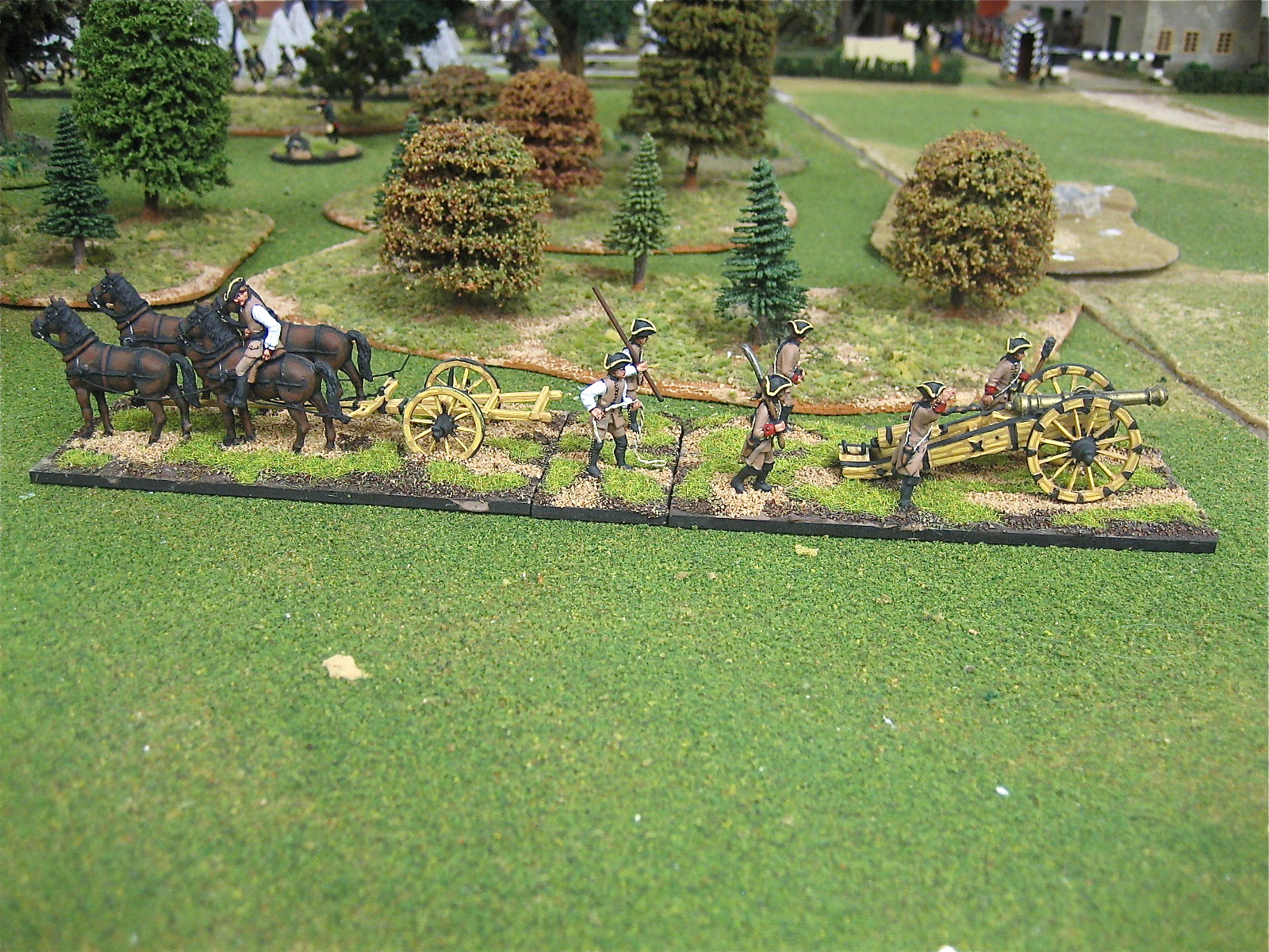 The artillery horses and the driver are from RSM miniatures. The limber and 12-pounder are Berliner Zinnfiguren models. The artillery crewmen and laborers are from Minden Miniatures.