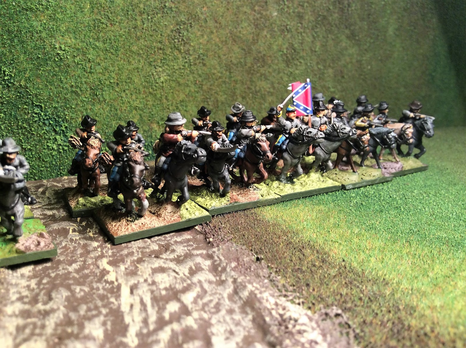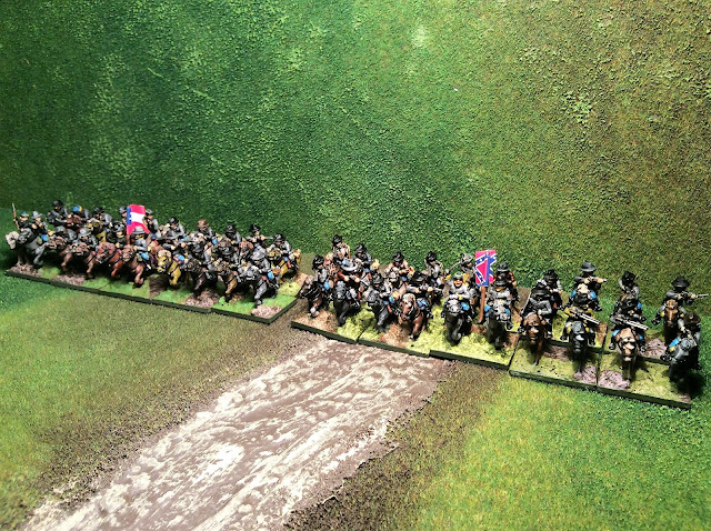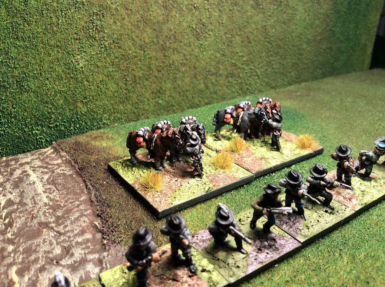 So, that aside I have been indulging in some 15mm ACW painting, in this instance cavalry. Neither side had any to speak of and as I have figures lying around, actually two boxes of Mini Figs and I think Peter Pig (or maybe Essex) given to me by Tom bless his heart, I thought that they would give a game something different. Not the greatest of figures but they will do, now it has to be said that any cavalry with the capability to dismount will take a bit of effort to paint up but I think these will be worth it.