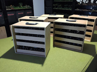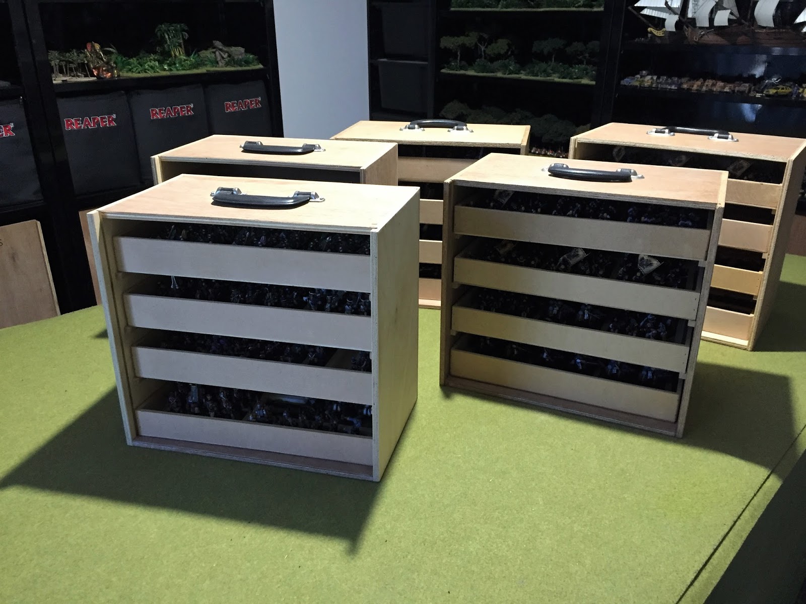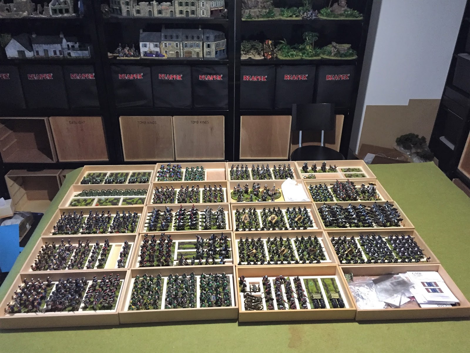 After the game the miniatures are packed away in their trays and into these wooden carrying cases ready for next time we play Slaughterloo.