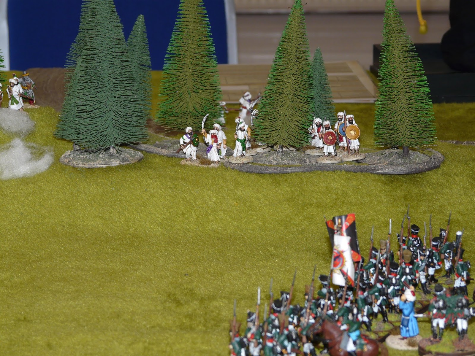 A close run thing, with the Russians attempting to cross the table with only a wooded hill separating the two forces.