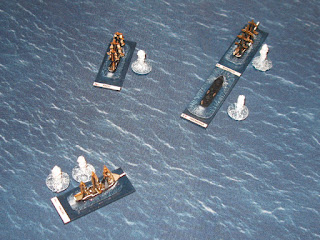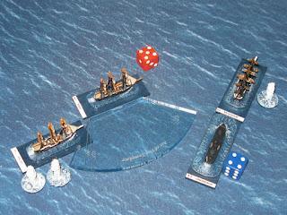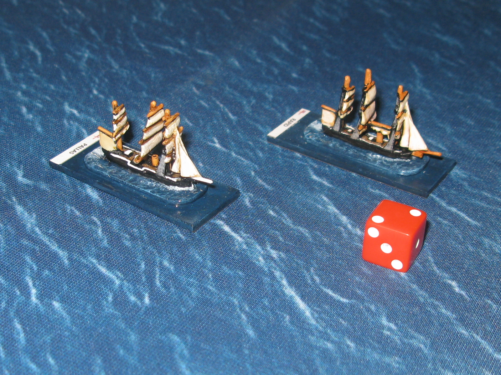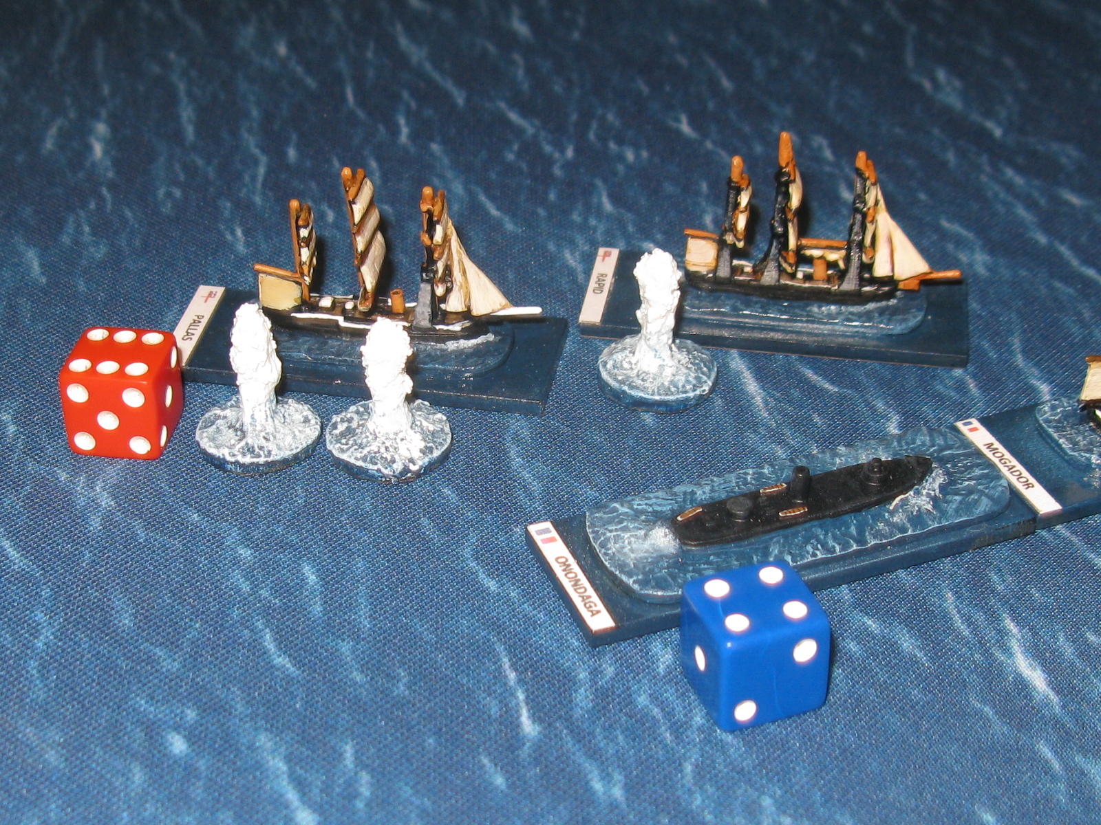 The French aced their AP roll enabling them the fully repair the Onondaga’s turrets and accelerate to full towing speed, again passing the tow break roll, while the Royal Navy turned 30 degrees to port and moved at full speed on an interception course. The range was rapidly closing but still too far for any firing.