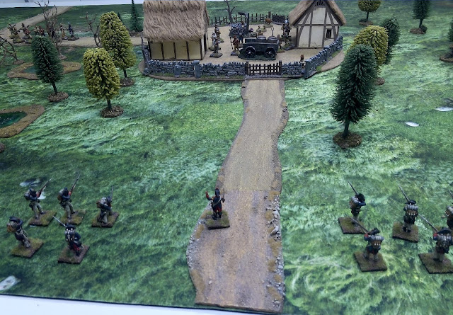 In der Zwischenzeit ist auch die Verstärkung aus dem Nachbardorf eingetroffen. Die Männer rennen durch den Wald auf den Gefechtslärm zu. Die überraschten Franzosen schiessen zwar noch zwei der Männer nieder, werden dann aber in wildem Nahkampf zurückgedrängt. Der Fourier kann seine disziplinierten Männer schnell sammeln und die folgende gezielte Salve schlägt diesen Trupp Landleute in die Flucht.