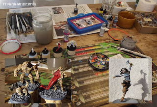 Der Gastgeber malte auch heute wieder seine Guildball-Figuren weiter ! – Eine Spielerin der Steinmetz-Guilde wurde so fertig ! – Meine Wenigkeit malte weitere Einzel-Miniaturen für mein MoonTown Setting : zwei „derbe Monster“ und ein Steampunk-Hund mit Gasmaske ! – Die werden noch „Ärger machen“ auf dem Spielfeld ! 😉