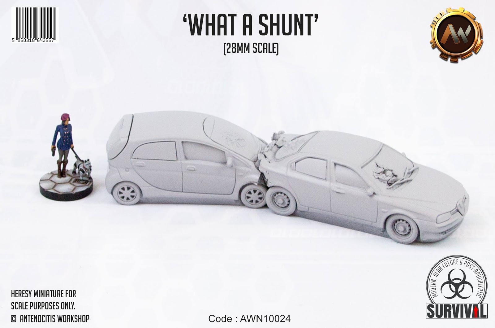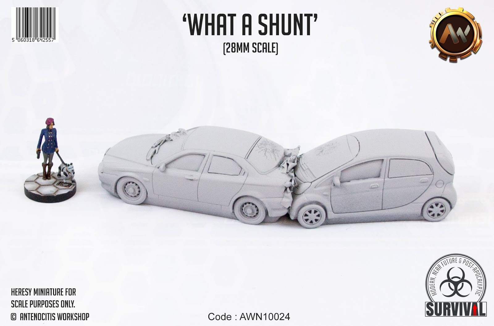 „Unsere Apokalypse soll schöner werden…“ so lautet das Thema bei „Antenocitis Workshop“ „Survival“ Range. Mit „What a Shunt“ bringen sie zwei neue Fahrzeuge heraus. Diese können entweder einzeln oder als Gruppe aufgestellt werden. Der Preis ist mit 13 Pfund erfreulich günstig….