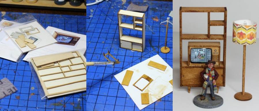The kits themselves are exquisite in their detail and the materials used, a real treat to assemble although fiddly in places – I even had to glue the buttons on to the television!