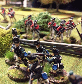 | British Loyalist Skirmishers, American War of Independence, miniatures painted by my matey Jesper |