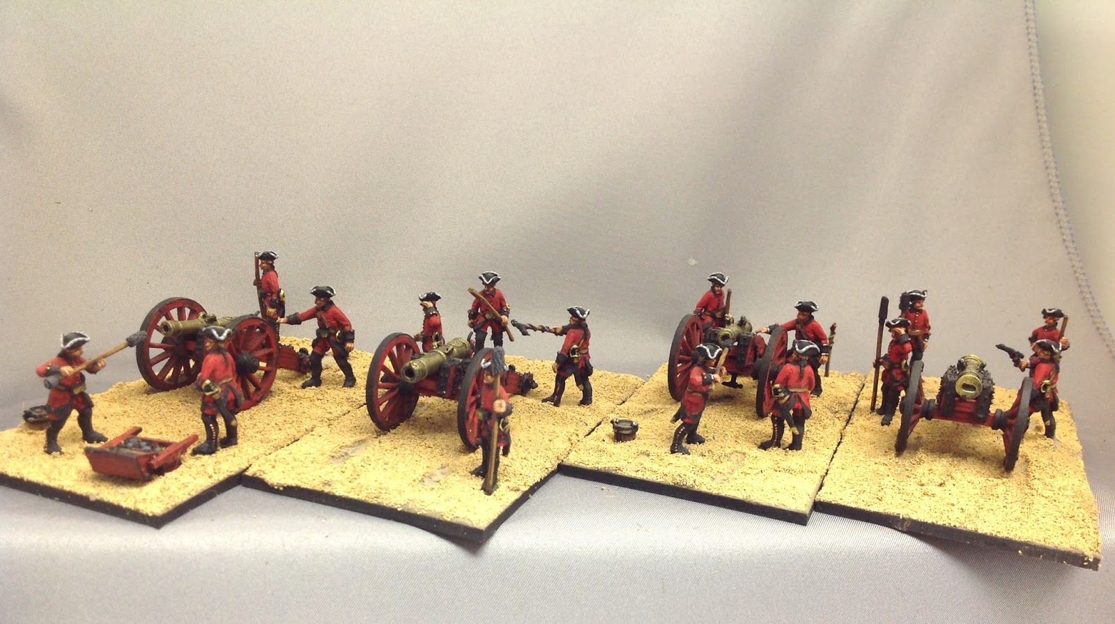 | My Russian artillery contingent of two 12-pounders and two howitzers (both Shuvulov Secret Howitzers). |