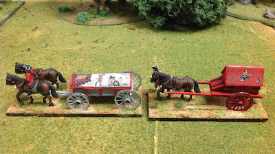 | The Green Set of wagons. 2-wheelers get one horse and rider. 4-wheelers get two horses and one rider. |